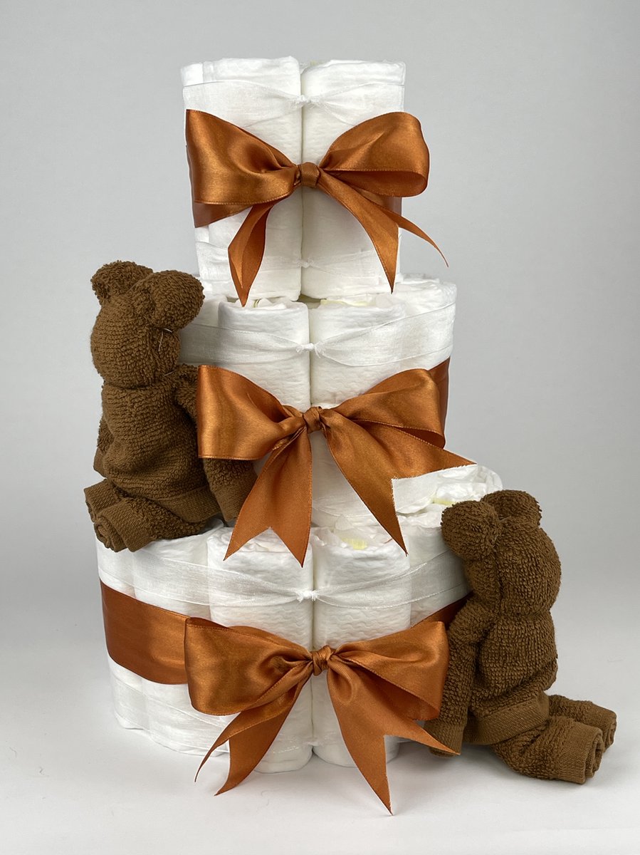 Luiertaart small neutraal met knuffeldoekje | kraamcadeau | babyshower | kraamfeest